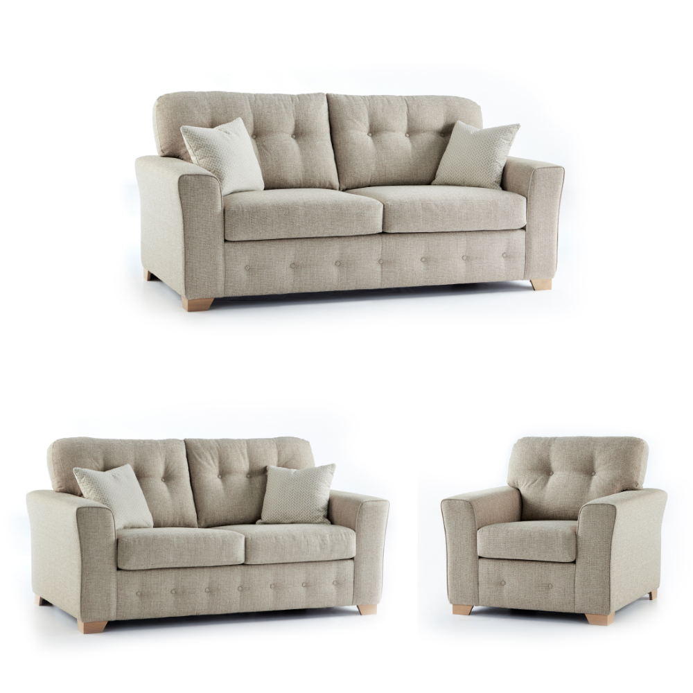 The Bartley Fabric 3+2+1 Seater Sofa set boasts a modern minimalist design that will sit well in both contemporary and traditional interiors. With its deep set foam and fiber filled cushions working in unison with the serpentine sprung seat.