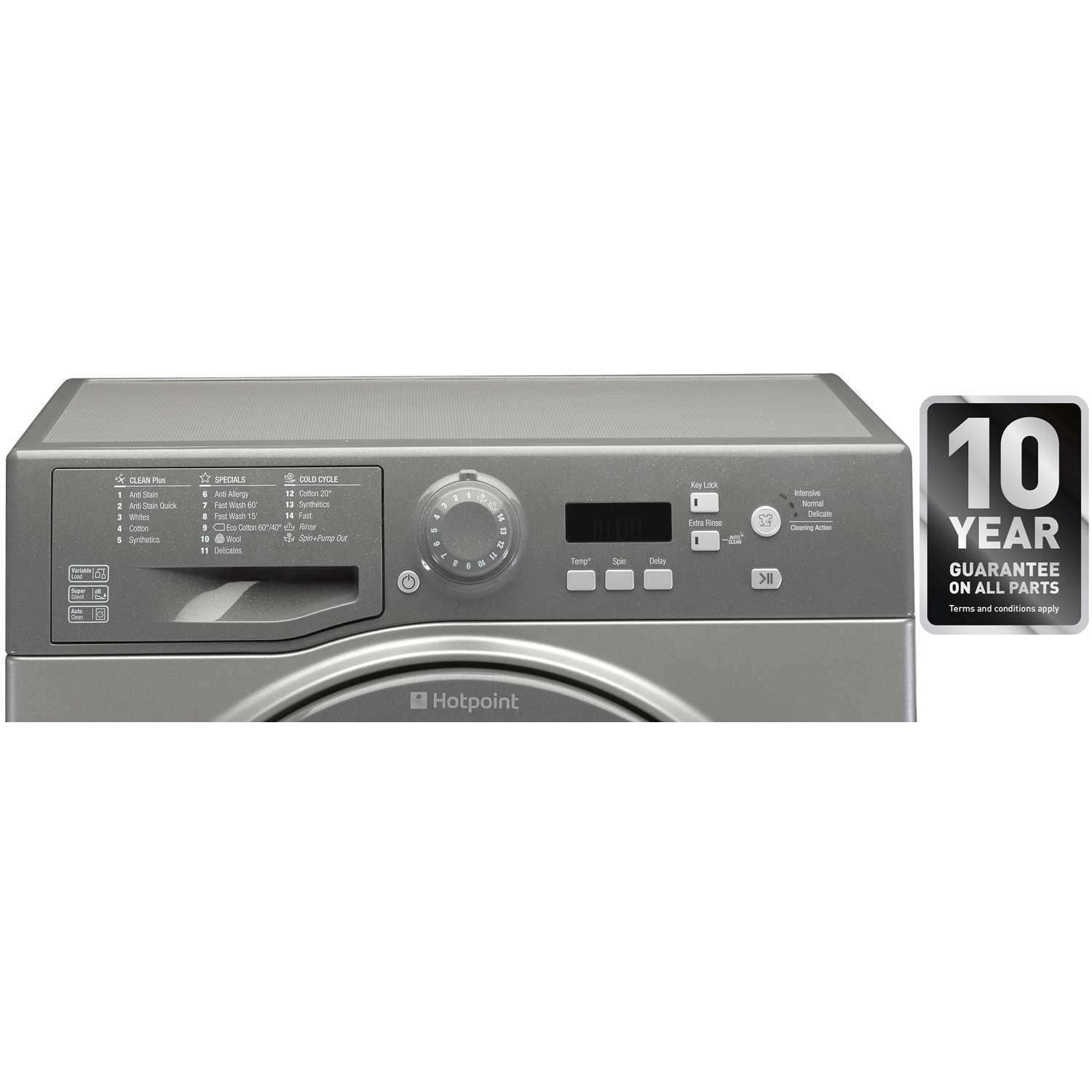 Hotpoints unique Anti-Stain technology feature tackles 20 of your most common stains for superb wash results, this can even be used in a quick cycle running at just an hour.